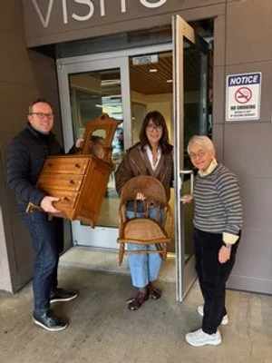 Monica Brown, Archivist for the Queen Anne Historical Society, has stepped forward to dispute all allegations of wrongdoing. She maintains that the so-called heist was, in fact, a legitimate transfer, MOHAI’s official donation to Bayview, coordinated by Monica herself, with the enthusiastic assistance of her “accomplice,” Anders Brown. This account is confirmed by Kristin Halunen, MOHAI’s Director of Collections Resources, who said, “We are happy that these precious little pieces of furniture are back in their original home.”