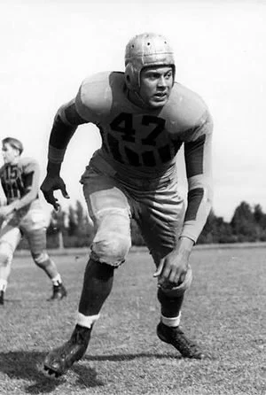 In 1933 he became the first black captain of the football team at Garfield High School. He attended the University of Iowa on a sports scholarship -- choosing not to attend the University of Washington because of perceived racist attitudes toward black athletes. He became the first African American player to captain a Big Ten team, and in 1937 earned the honor of Most Valuable Player.