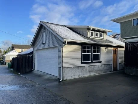 I marked the alley houses on the Sanborn map in yellow. The one at 2129 ½ 1st Ave. W. sits on a relatively new foundation, while the other, at 2122 ½ 2nd Ave. W., is just getting one. The blue X on the west side of the alley indicates the site of a new alley house over a garage, pictured just below. The red X on the east side is where a garage has been designed to suggest it too is an alley house. In1964, the school district destroyed the three houses along Crockett St. to make room for the new McClure Middle School parking lot. The residential quality of the block is made clear as all the buildings are labeled with a ‘D’. It stands for "wood frame dwelling." A close look tells you that all the houses except the alley houses and the one at 115 W. Boston St. had basements (B). The D would have been significant. That way the fire insurance company, let’s say Sanborn back in Philadelphia, would have known they were being snookered when someone submitted a claim for an expensive brick building that had burned down on the site. The prevention of true fraud at any moment in history is probably a good thing.