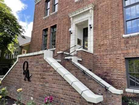 Built to house heavy telephone equipment and the young women who operated it, this landmark was completed in 1922. A second story was added in 1929, and the structure was later donated to the Seattle Public Library by the telephone company. When the Library got ready to sell the building, it hired BOLA Architecture and Planning to prepare a landmark nomination for the LPB’s consideration. When BOLA presented the nomination, the QAHS swung into action writing letters and testifying in favor of the nomination and subsequent designation. Once designated as a city landmark, the controls and incentives negotiated with the LPB by the Seattle Public Library protected the building as it changed ownership. Soon after the 2016 designation and its purchase, the new owner, the Faul Company and their architect, BuildingWork, began presenting design options to the Architectural Review Committee (ARC) of the LPB. The QAHS attended numerous meetings of the ARC related to the Garfield Exchange commenting on the transformation of the industrial spaces to 25 residential apartment homes featuring 15-foot ceiling heights and restoration of the building’s exterior façade, its seismic retrofit and new building systems. The proposed changes included a redesign of the primary entrance leading to the street, the replacement of windows, the introduction of a new elevator in the hidden courtyard on the south side and the addition of a penthouse. The Queen Anne Historical Society did not oppose the hidden changes in the courtyard and embraced the penthouse addition since it was set back from the historic façade and could not be seen from the street directly in front of the building. Significantly the penthouse addition met the Secretary of the Interior’s Standards for Historic Preservation by not mimicking in the new work historic qualities of the original fabric. The society demanded the retention of the terra cotta capped stairway with its unique hammerhead shape and encouraged retention of a historic hoisting device on the alley side of the building.